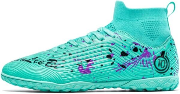 Botas de fútbol en color negro diseñadas para rendimiento y estabilidad. Upper ligero y transpirable, ajuste cómodo con collar alto y suela de goma antideslizante que garantiza tracción y control en cada movimiento. Ideales para entrenamientos intensos y partidos sobre césped artificial y terreno firme.