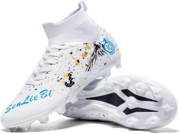 Botas de fútbol en color negro diseñadas para rendimiento y estabilidad. Upper ligero y transpirable, ajuste cómodo con collar alto y suela de goma antideslizante que garantiza tracción y control en cada movimiento. Ideales para entrenamientos intensos y partidos sobre césped artificial y terreno firme.
